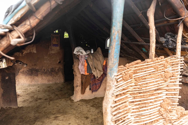 Maruthi has an employment guarantee scheme work card. She will go down to Melle Mulli for work whenever she can manage. Chathan and the children take care of the cattle and goats.