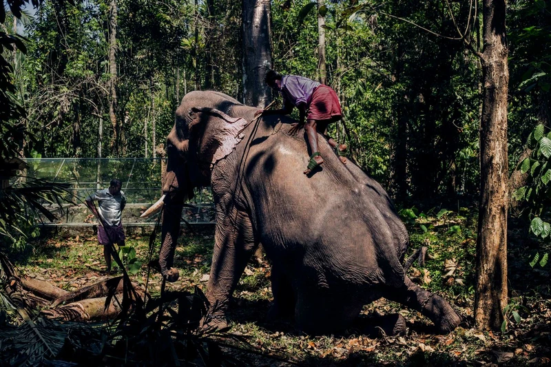 Usually, elephants present their right hind leg for their mahouts to climb up and down. But theywould do so only after the mahouts have spent enough time with them to establish a reasonable degree of control.